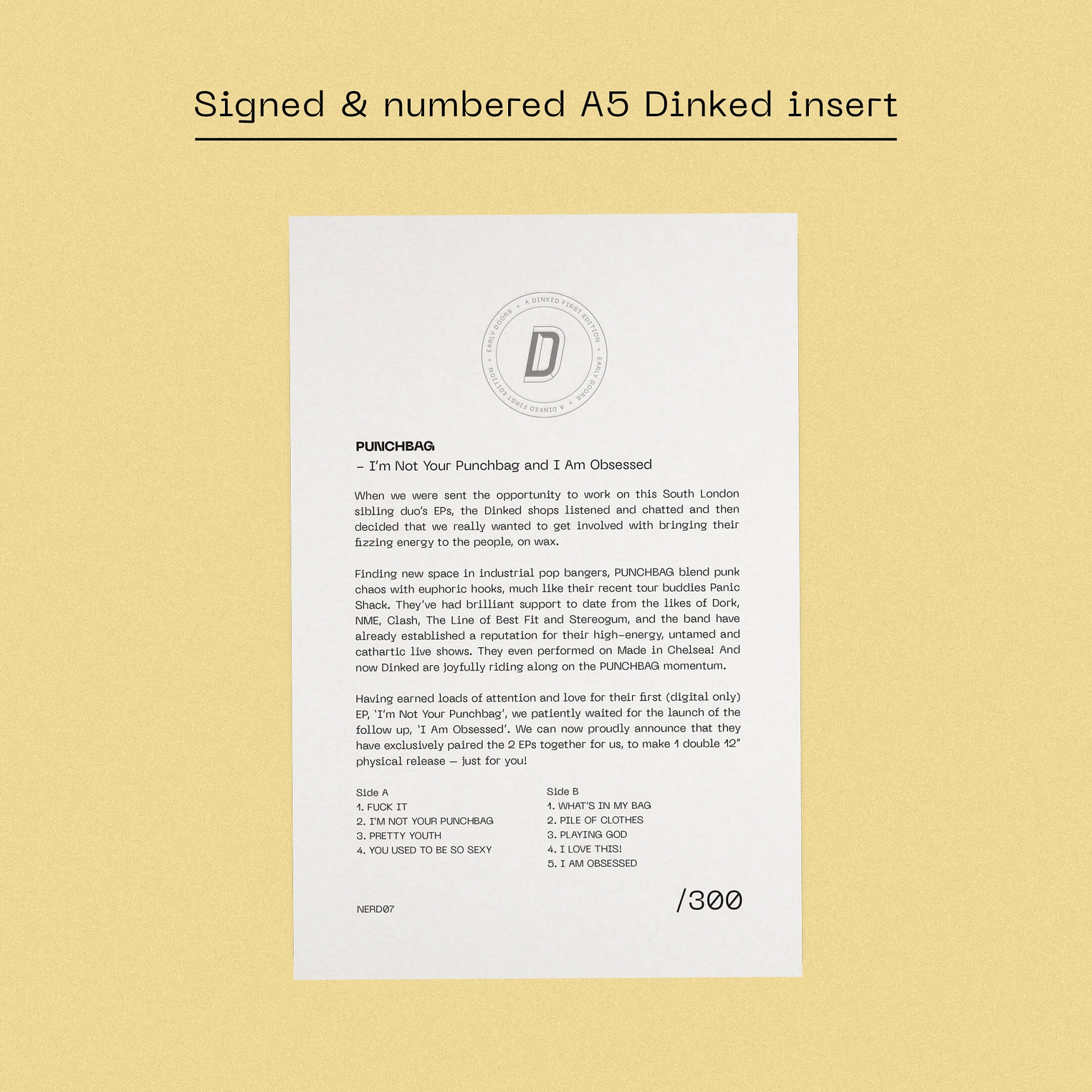 An energetic and boisterous electro-punk serving from the London-based brother-sister duo that burst into our ears with their hit-packed debut EP, I'm Not Your Punchbag. This fancy Early Doors Dinked edition expands that initial outing with the addition of I Am Obsessed, their brand-new EP.